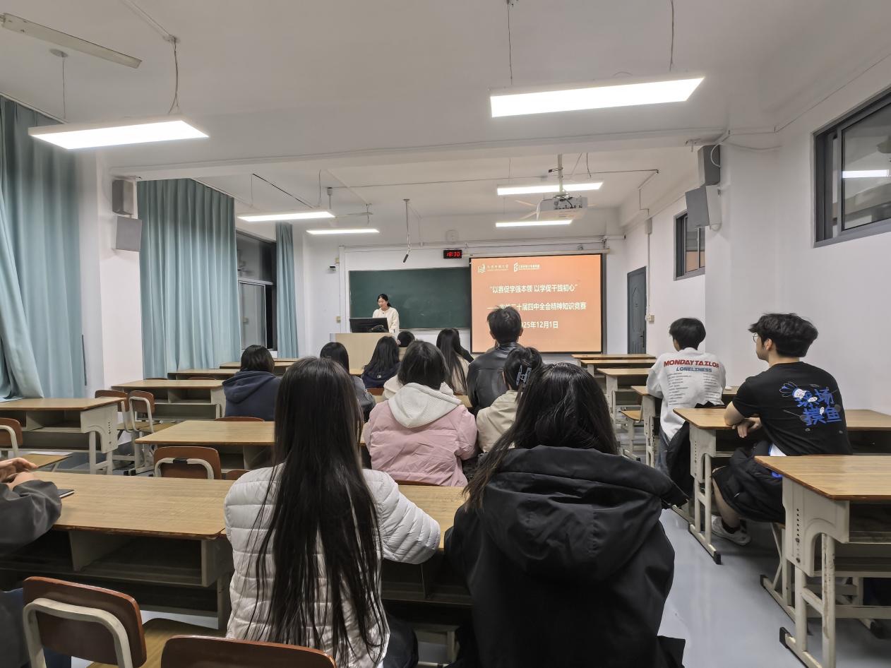 2025年12月1日18:00,商学院在东校区教学楼407室举办党的二十届四中全会精神学习知识竞赛,23名学生代表参加比赛,在以赛促学中深化对党的二十届四中全会精神的理解与把握。