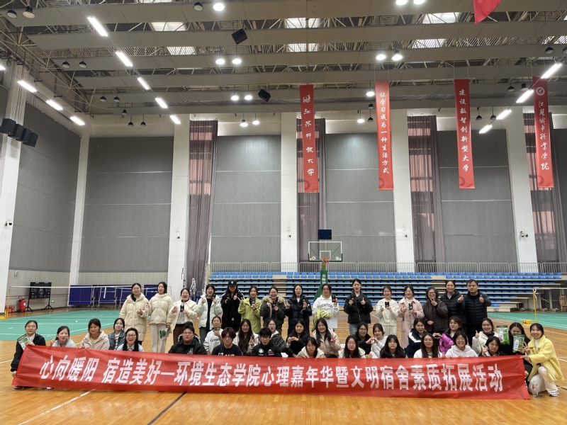 为进一步提升学生心理素质,筑牢文明宿舍建设根基,增强宿舍成员间的凝聚力与协作力,12月3日,环境生态学院以“心向暖阳 宿造美好”为主题,举办了2025年心理嘉年华暨文明宿舍素质拓展活动。学校关工委王晓雯老师受邀参加活动,学院党总支副书记杨丹、学工办主任陈涛涛及各年级宿舍代表积极参与。